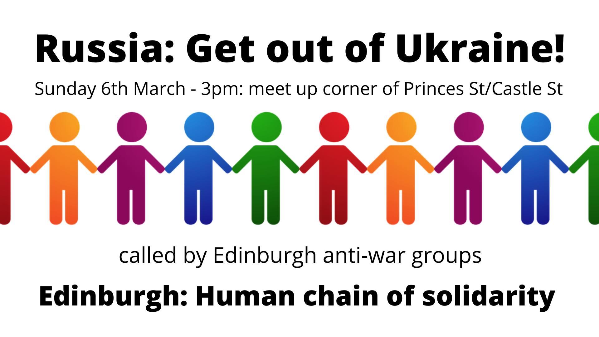This event is coordinated by Edinburgh peace and anti-war groups. We plan to form a human chain along both sides of Princes street. We will be there in solidarity with the Ukrainian people and with Russian anti-war protestors and we will be calling for a stop to war and for Russian Troops to withdraw.